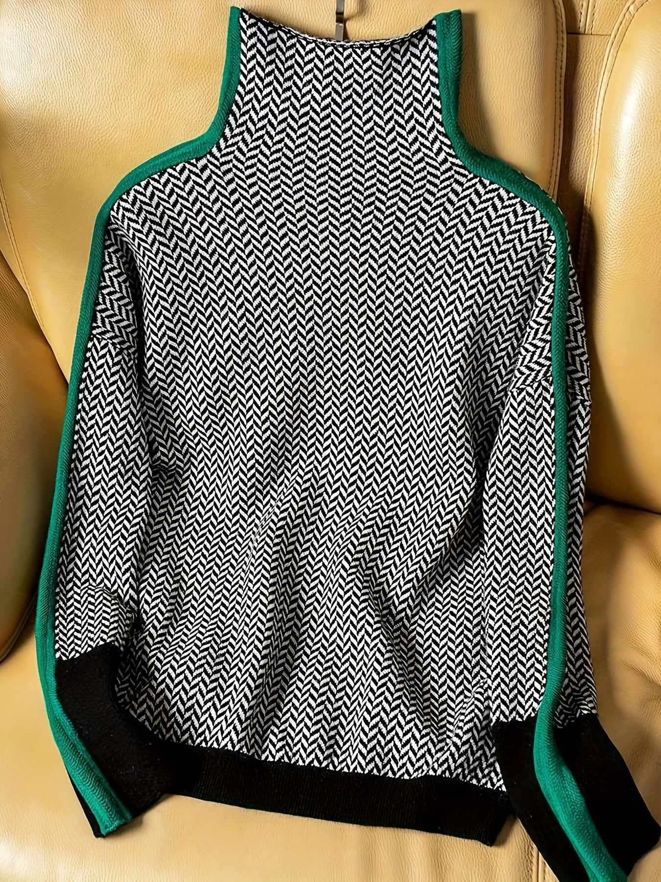 Women's Elegant Sweater - Chic Black, Brown, Beige, Orange Accent Sweater for Fall/Winter, Office, Party, Everyday Outfits - Non-Transparent Sweater Pullover, Cute Sweater, Fall Winter Clothing, Medium Elasticity Fabric